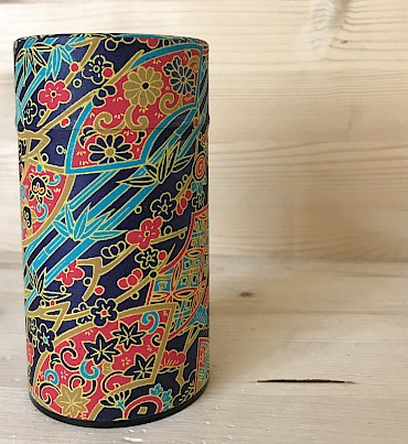 Lattina in metallo porta tè, tisana o infuso rivestita in carta giapponese washi in stile Furoshiki originale da 100 g