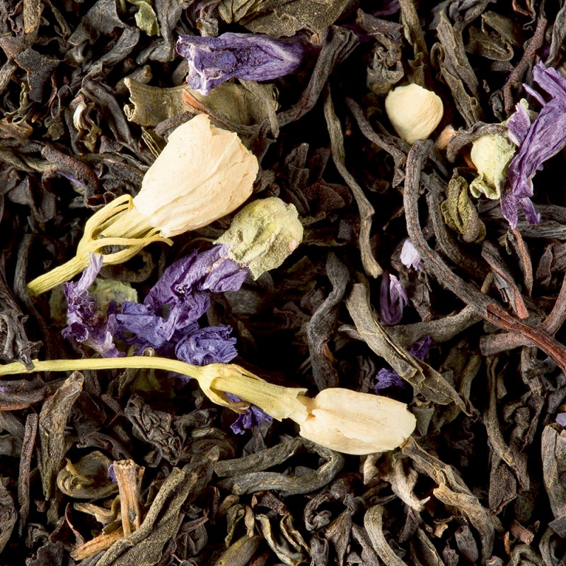 Per questo tè nero abbiamo aggiunto una piccola percentuale di essenza di bergamotto per aumentarne il gusto ed i fiori di malva e gelsomino con una punta di vaniglia per completarne l'aroma profumato ed inebriante.