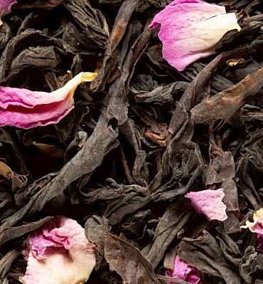 Il tè nero ai petali di rose è preparato miscelando un tè nero cinese con petali profumatissimi di roselline asiatiche. Ha un gusto estremamente morbido e soave accompagnato da un profumo di rosa avvolgente. La lavorazione è fatta mettendo strati di tè alternati a strati di petali di rosa senza aggiunta di aromi o olii essenziali. Terminata la lavorazione le foglie di tè vengono setacciate in modo da lasciare solo una piccola parte di petali di rosa.